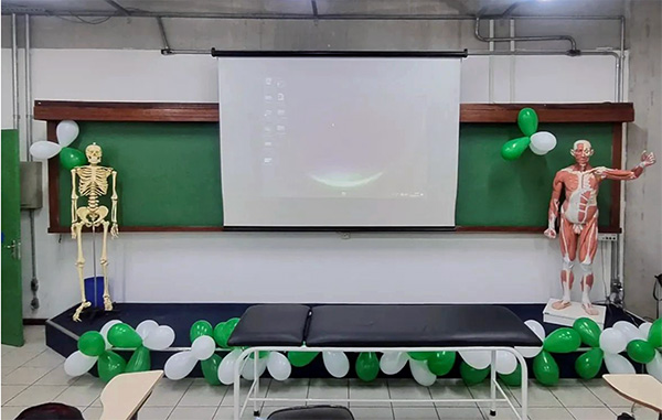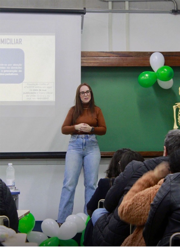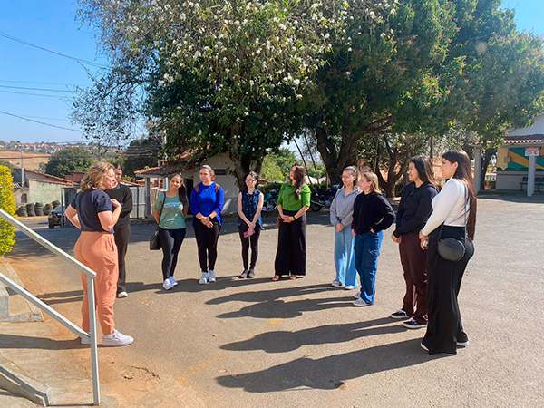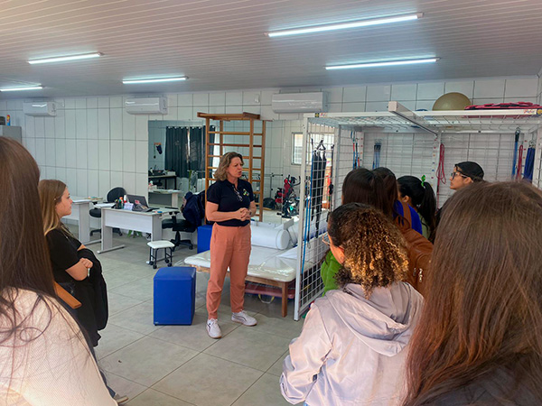 A turma foi recebida pela fisioterapeuta Tatiana Naraya Puzzi de Campos, que apresentou e contextualizou as diferentes terapias utilizadas no atendimento aos pacientes: